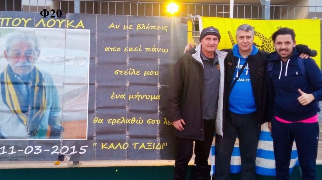 Φ20 Ο σκόρερ των γκολ της ΑΕΚ Λάμπρος Γεωργιάδης και ο δημιουργός Ιβάν Ρούσεφ, φωτογραφήθηκαν με τον Γιώργο Βούλγαρη, μπροστά από το επετειακό για τα εννέα χρόνια από τον θάνατο του πατέρα του, πανό