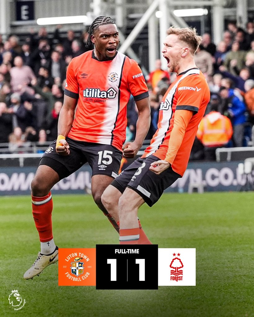 Λούτον και Φόρεστ κόλλησαν στο 1-1 και η μεταξύ του μάχη για την παραμονή θα κρατήσει ως το τέλος.