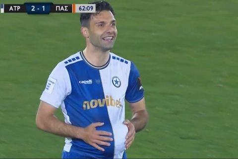 Ο Γιώργος Τζαβέλλας έκανε το 2-1 για τον Ατρόμητο κόντρα στον ΠΑΣ Γιάννινα και έβαλε την μπάλα μέσα από τη φανέλα του, αφιερώνοντας το γκολ στη σύντροφό του, Βίκυ Κάβουρα που περιμένει το παιδί τους, σε μία πολύ όμορφη στιγμή