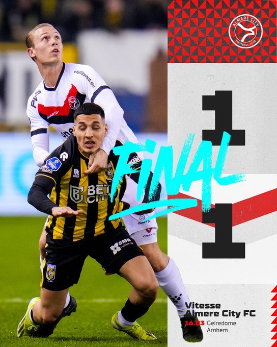 Από έναν βαθμό μοιράστηκαν Φίτεσε και Αλμίρε για την 26η αγωνιστική της Eredivisie, καθώς έμειναν στο 1-1. Παρέμειναν στην ζώνη του υποβιβασμού οι γηπεδούχοι, τέταρτο ματς δίχως τρίποντο για τους φιλοξενούμενους. Στο 19’ ο Χάνσεν έκανε το 0-1 και στο 87’ ο Μούσα διαμόρφωσε το τελικό 1-1.