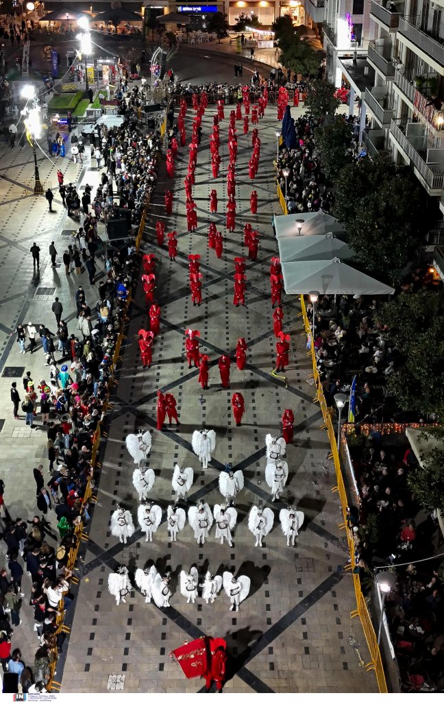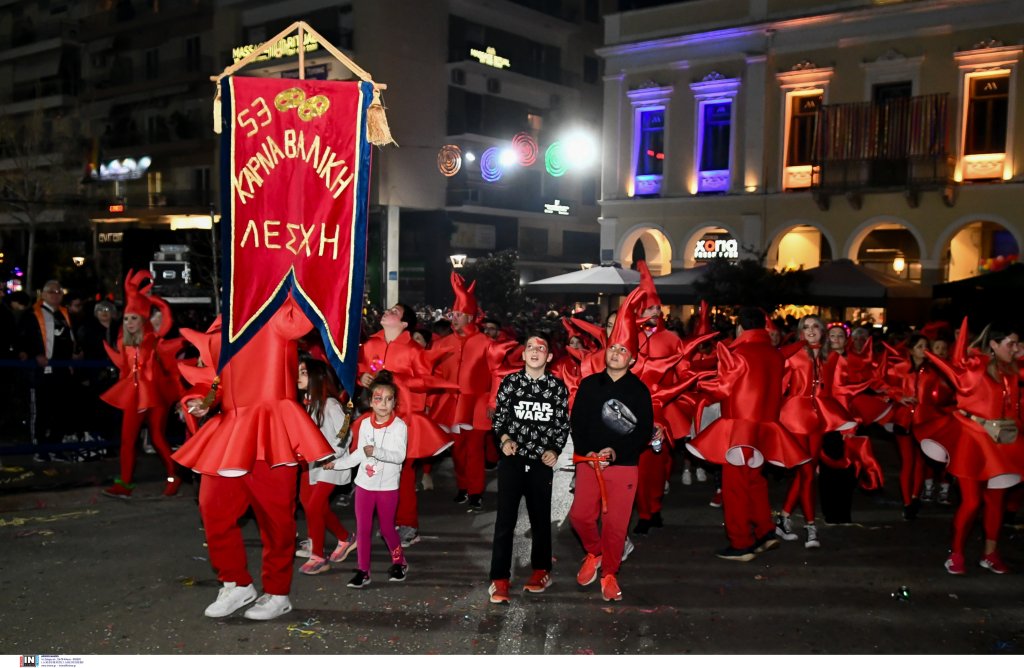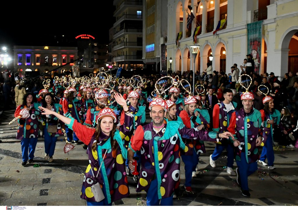 Η νυχτερινή ποδαράτη παρέλαση του Σαββάτου ξετυλίχθηκε στην οδό Κορίνθου και στην πλατεία Γεωργίου Α΄ με τους φωτισμούς, τη γρήγορη ροή, τα χρώματα και το κέφι να δίνουν λάμψη και μεγαλοπρέπεια στη νύχτα του τελευταίου Σαββάτου του Πατρινού Καρναβαλιού.