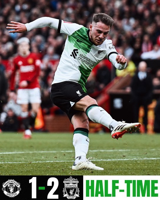 Λίγο πριν το φινάλε του πρώτου μέρους, η Λίβερπουλ ισοφάρισε σε 1-1 τη Μάντσεστερ Γιουνάιτεντ με σουτ του ΜακΆλιστερ στην κλειστή γωνία του Ονανά και στο 45+2’ ο Σαλάχ μετά από σουτ του Νούνιες πήρε το ριμπάουντ και με πλασέ έγραψε το 1-2! Μάλιστα, στο 37ο λεπτό, οι "κόκκινοι" είχαν και ακυρωθέν γκολ με τον Έντο.