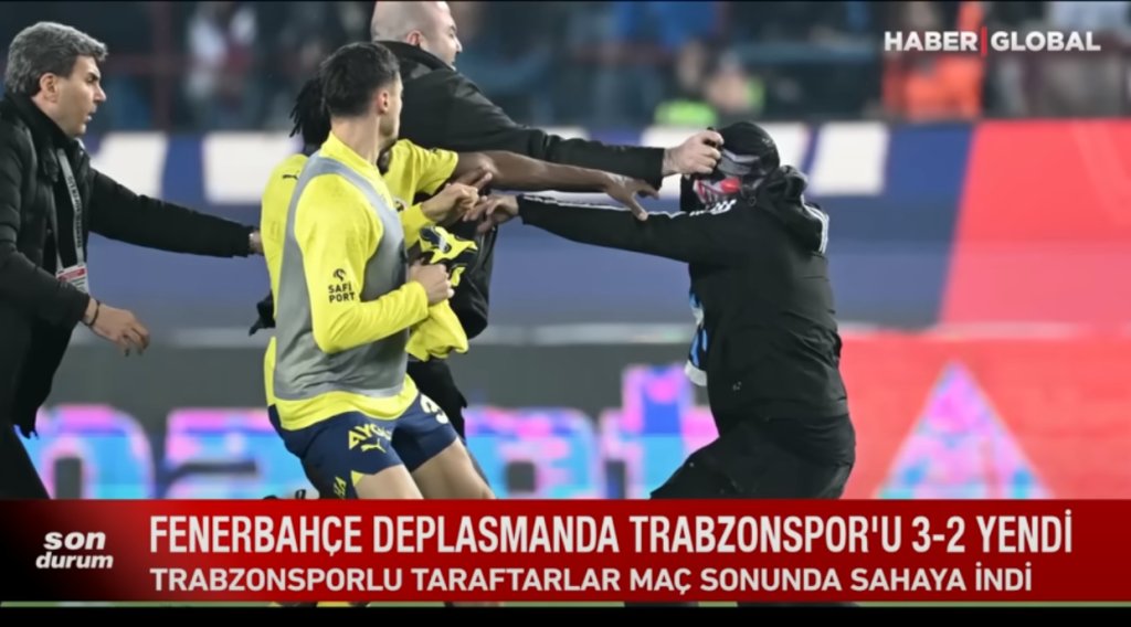 Η Φενέρ πήρε τη νίκη, με γκολ του Μπατσουαγί στο 87ο λεπτό, και, με το σφύριγμα της λήξης, οπαδοί της Τράμπζονσπορ εισέβαλαν στον αγωνιστικό χώρο και επιτέθηκαν σε ποδοσφαιριστές της Φενέρμπαχτσε, οι οποίοι απάντησαν.