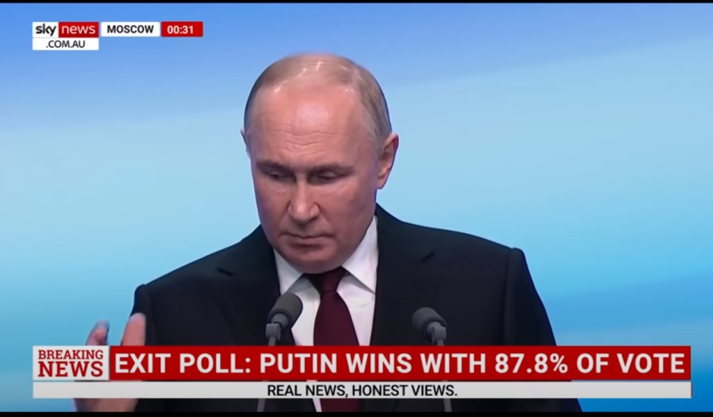 Με το 98% των εκλογικών τμημάτων να έχει ενσωματωθεί, ο Βλαντίμιρ Πούτιν, έχοντας λάβει πάνω από το 87% των ψήφων, εξασφάλισε νέα προεδρική θητεία στη Ρωσία και θα βρίσκεται στο Κρεμλίνο, για άλλα έξι χρόνια.