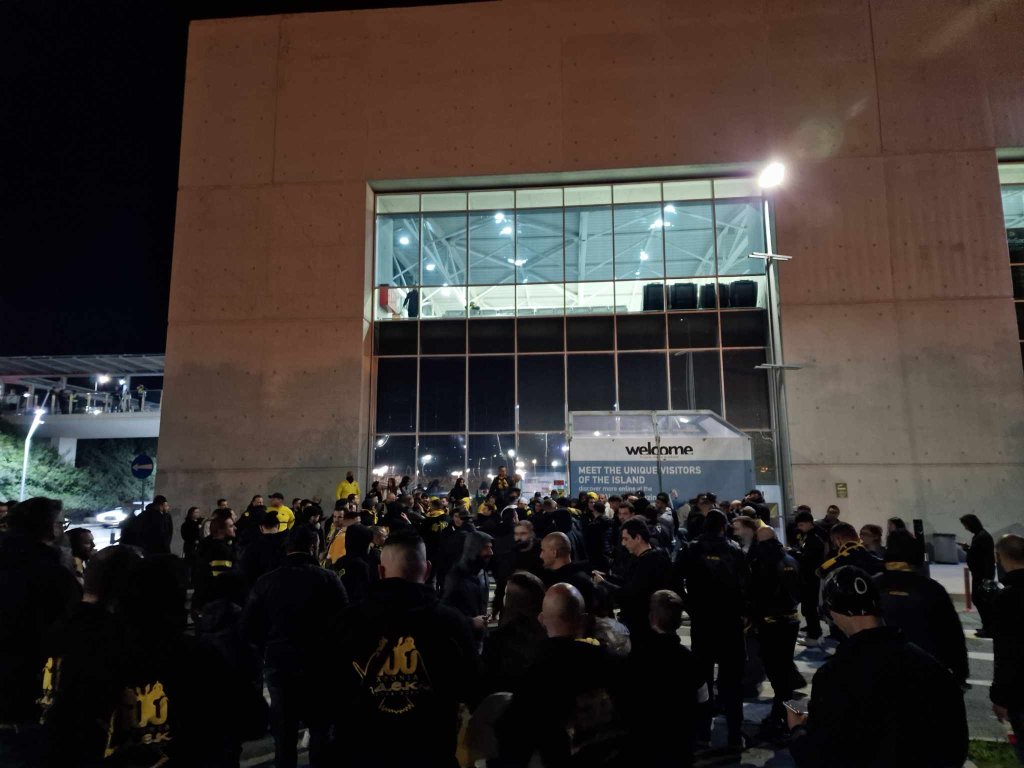 Τρομερή υποδοχή της ΑΕΚ στην Κύπρο! Εκατοντάδες φίλοι της ORIGINAL 21 Κύπρου (Αμμόχωστος, Λεμεσός, Λευκωσία, Πάφος) και πάρα πολλά μικρά παιδιά, βρέθηκαν στο αεροδρόμιο και καλωσόρισαν στην Μεγαλόνησο Ματίας Αλμέιδα και ποδοσφαιριστές. Δεκάδες καπνογόνα, συνθήματα για Πρωτάθλημα ξανά και αποθέωση για τον Ματίας συνέθεταν το σκηνικό μιας μεγαλειώδους υποδοχής. Η ΑΕΚ θυμίζουμε έφτασε στην Κύπρο για να αντιμετωπίσει την Τετάρτη τον Απόλλωνα Λεμεσού στο «Άλφαμέγα Stadium» σε φιλικό αγώνα στο πλαίσιο των εορτασμών της κυπριακής ομάδας, που συμπληρώνει 70 χρόνια ζωής.