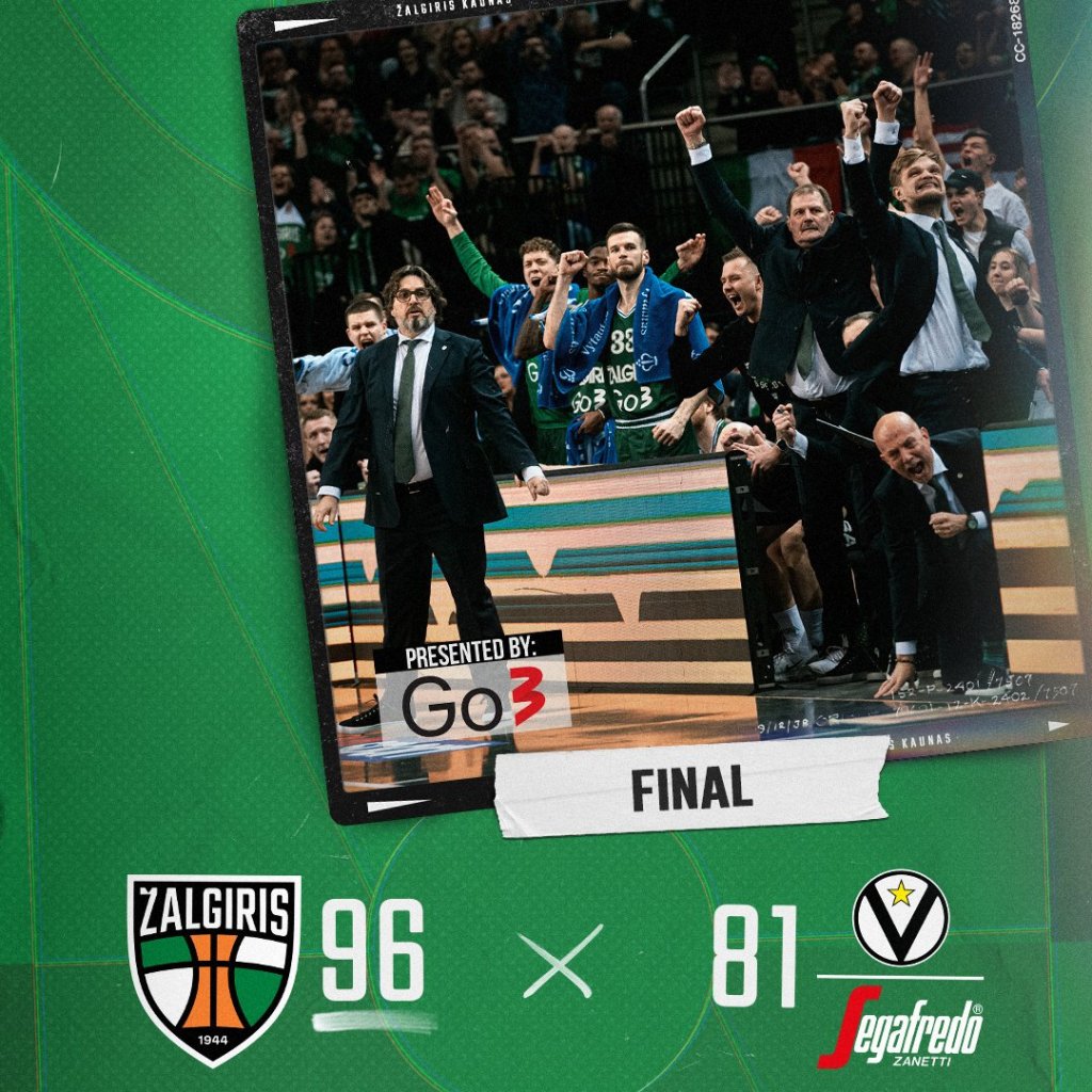 Ήττα-σοκ γνώρισε από τη Ζαλγκίρις η Βίρτους με 96-81 και έχασε πολύτιμο έδαφος στη «μάχη» που δίνει για το καλύτερο δυνατό πλασάρισμα στην τελική κατάταξη της κανονικής περιόδου. Πρώτοι σκόρερ για τους νικητές οι Σάμνερ και Έβανς που είχαν 16 και 14 πόντους αντίστοιχα ενώ για τη Βίρτους ξεχώρισε ο Σενγκέλια που τελείωσε το ματς με 19 πόντους.