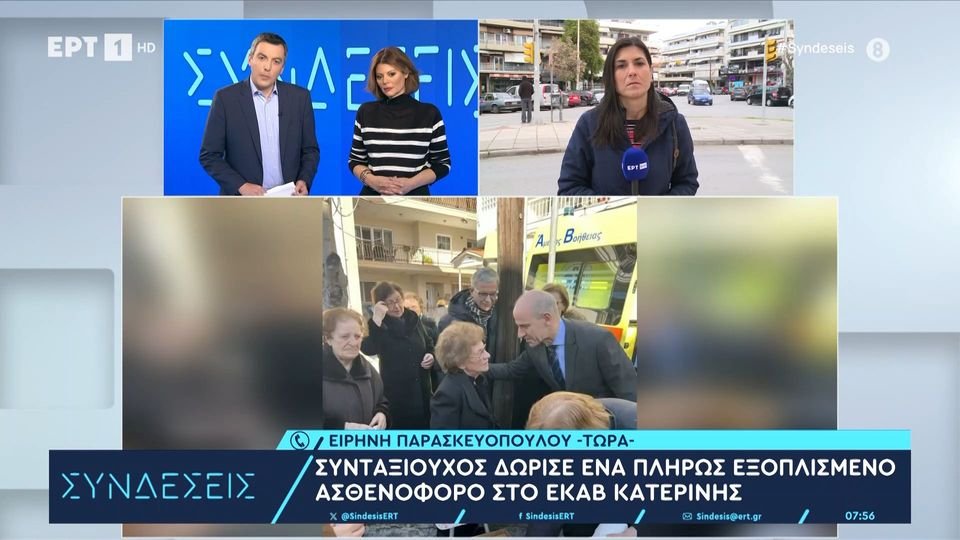 Σε μια αξιέπαινη πράξη προχώρησε μια συνταξιούχος γυναίκα, καθώς έκανε δωρεά στο ΕΚΑΒ Κατερίνης ένα πλήρως εξοπλισμένο ασθενοφόρο
