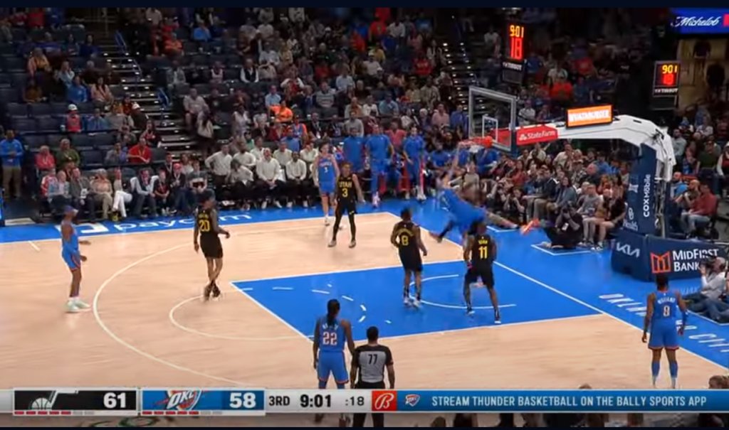 Ο 21χρονος φόργουορντ της Θάντερ έκανε πόστερ τον Χέντρικς των Τζαζ, καρφώνοντας την μπάλα στο αντίπαλο καλάθι.