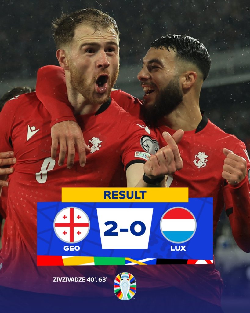 Στον τελικό η Γεωργία και περιμένει την… Εθνική μας. Οι Γεωργιανοί λύγισαν με 2-0 το Λουξεμβούργο και πέρασαν στην επόμενη φάση, η οποία θα διεξαχθεί στην έδρα τους στις 26 Μαρτίου.