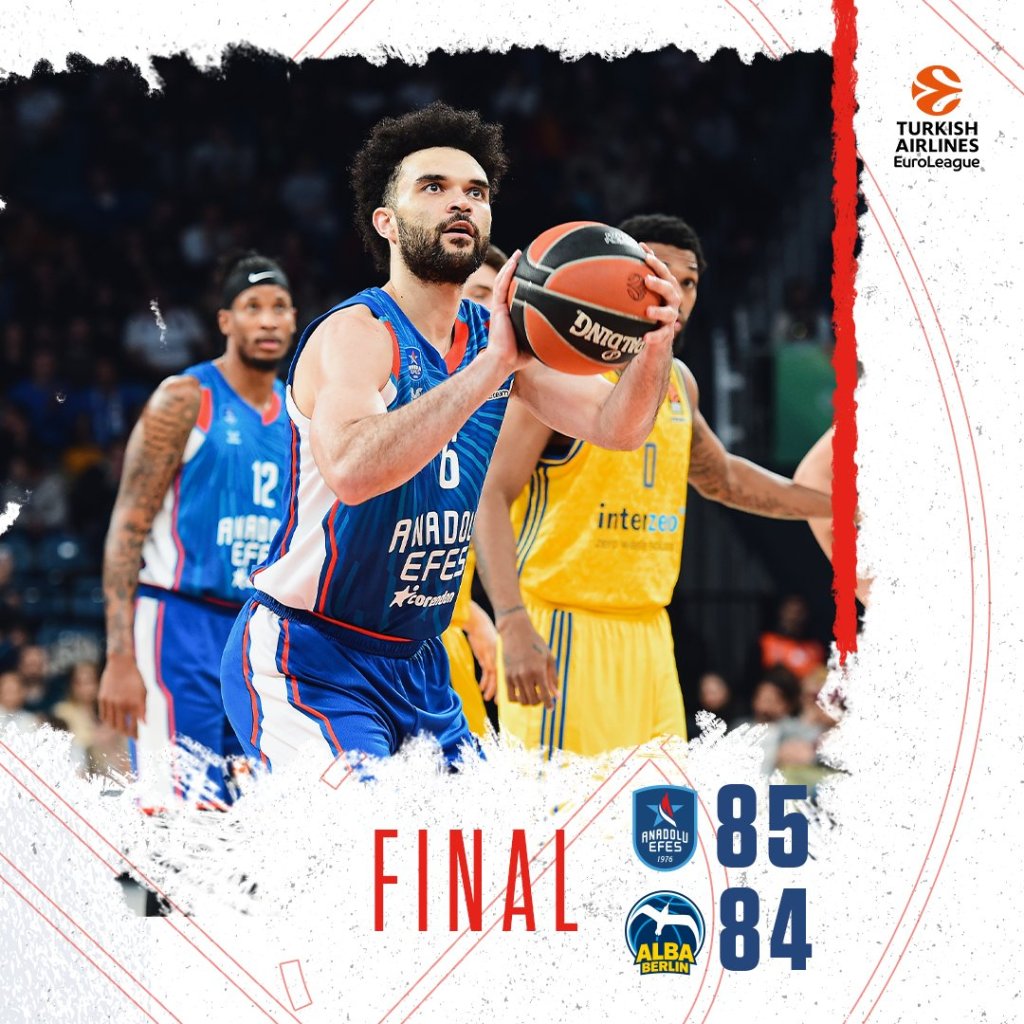Μετά από πολύ άγχος και με τον Λάρκιν να μένει στο μηδέν, η Αναντολού Εφές κέρδισε στο τελευταίο δευτερόλεπτο την Άλμπα Βερολίνου με 85-84 και μένει ζωντανή για το play in. Ήρωας στο φινάλε ο Τζόουνς με το κόψιμο στον Χέρμανσον.