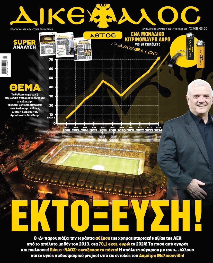 Ο «Δ» παρουσιάζει την τεράστια αύξηση της χρηματιστηριακής αξίας της ΑΕΚ από το απόλυτο μηδέν του 2013, στα 70,1 εκατ. ευρώ το 2024! Τα ποσά από αγορές και πωλήσεις! Πως ο «ΝΑΟΣ» εκτόξευσε τα πάντα!