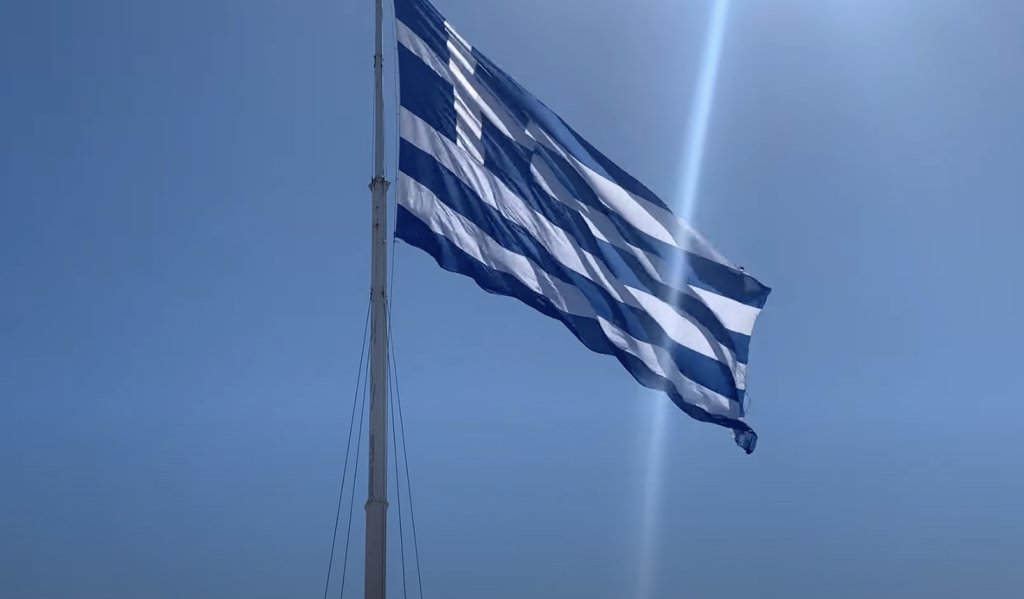 Υψώθηκε το μεσημέρι του Σαββατου, προπαραμονή της Εθνικής Επετείου της 25ης Μαρτίου, μια τεράστια ελληνική σημαία στο λιμάνι της Χίου.