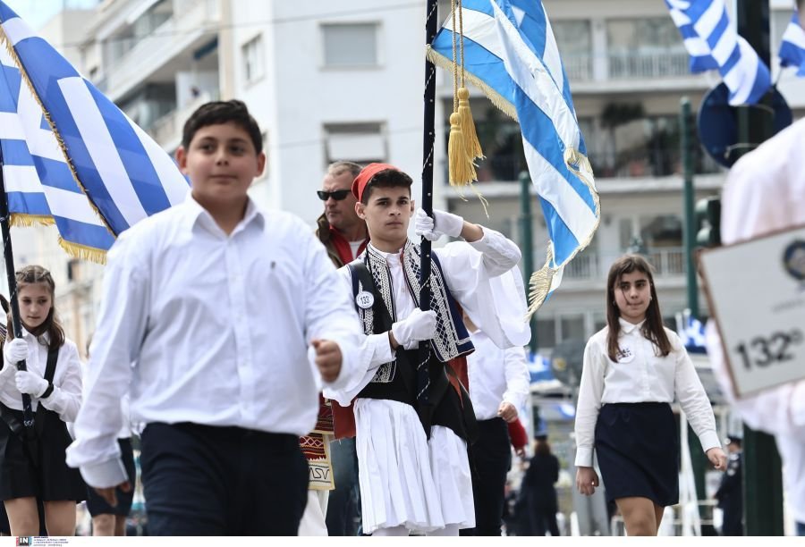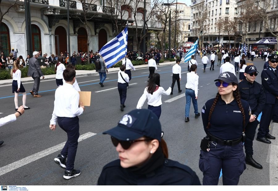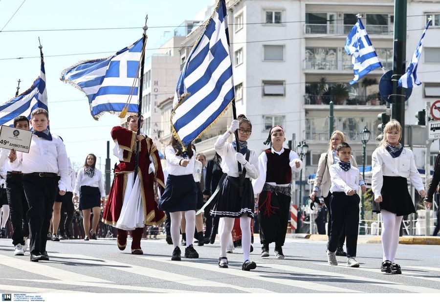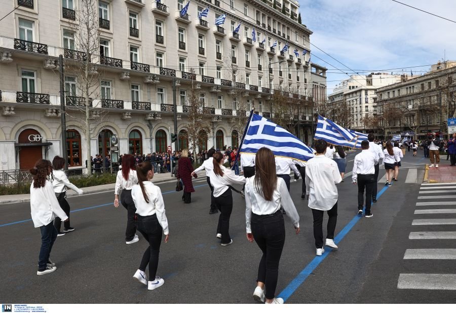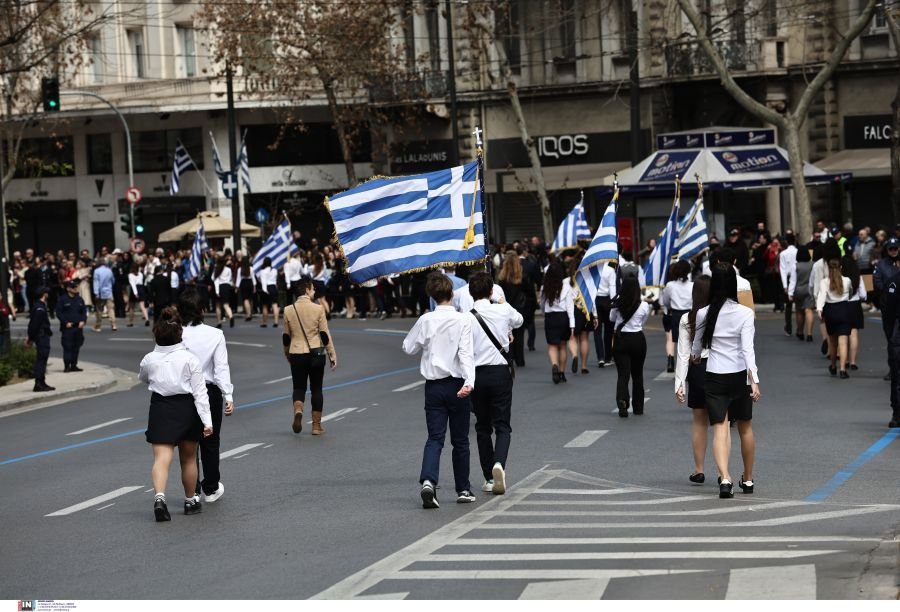 1.500 μαθητές, από 229 σχολεία της Αττικής και ένα από τα Καλάβρυτα, παρήλασαν, το μεσημέρι της Κυριακής, στο κέντρο της Αθήνας, για την επέτειο της 25ης Μαρτίου.