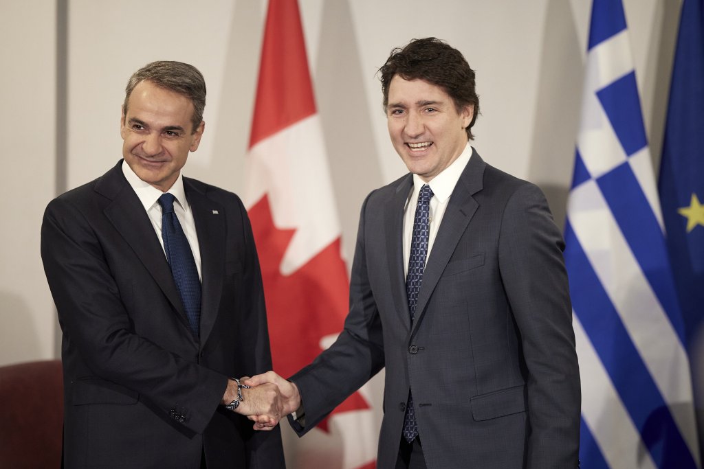 Ο πρωθυπουργός Κυριάκος Μητσοτάκης συναντήθηκε σήμερα, Κυριακή, με τον ομόλογό του στον Καναδά, Τζαστίν Τριντό, στο πλαίσιο της διήμερης επίσκεψής του στη χώρα της βόρειας Αμερικής.
