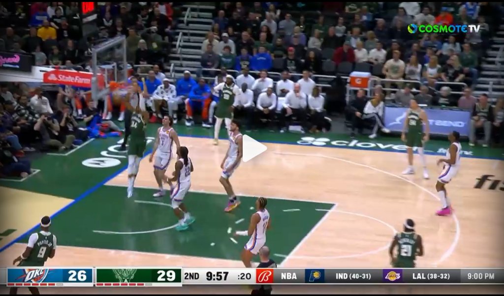 Στο ξεκίνημα της δεύτερης περιόδου, του αγώνα με την Οκλαχόμα Σίτι Θάντερ, ο Γιάννης Αντετοκούνμπο πήρε την μπάλα, πάτησε το γκάζι, παρέσυρε όποιον βρέθηκε στο διάβα του και κάρφωσε θεαματικά.