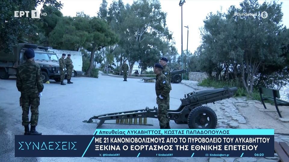Ο πρώτος κανονιοβολισμός σημειώθηκε στις 6:20 το πρωί, από το πυροβολείο του Λυκαβηττού για να αντηχήσουν ακολούθως άλλοι 20 κανονιοβολισμοί, όπως προβλέπει το καθιερωμένο πρωτόκολλο για να τιμηθεί η ιστορική επέτειος.