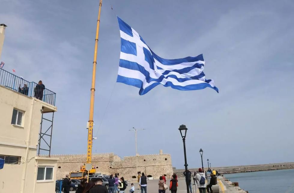 Σημαία ενάμιση στρέμμα υψώθηκε στο λιμάνι του Ηρακλείου, με αφορμή την επέτειο της 25ης Μαρτίου 1821.