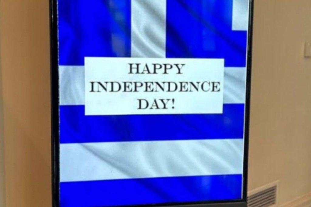 Συγκεκριμένα, στο ξενοδοχείο που καταλύει η ελληνική αποστολή υπάρχει μήνυμα για την εθνική επέτειο της 25ης Μαρτίου και της επανάστασης του 1821!