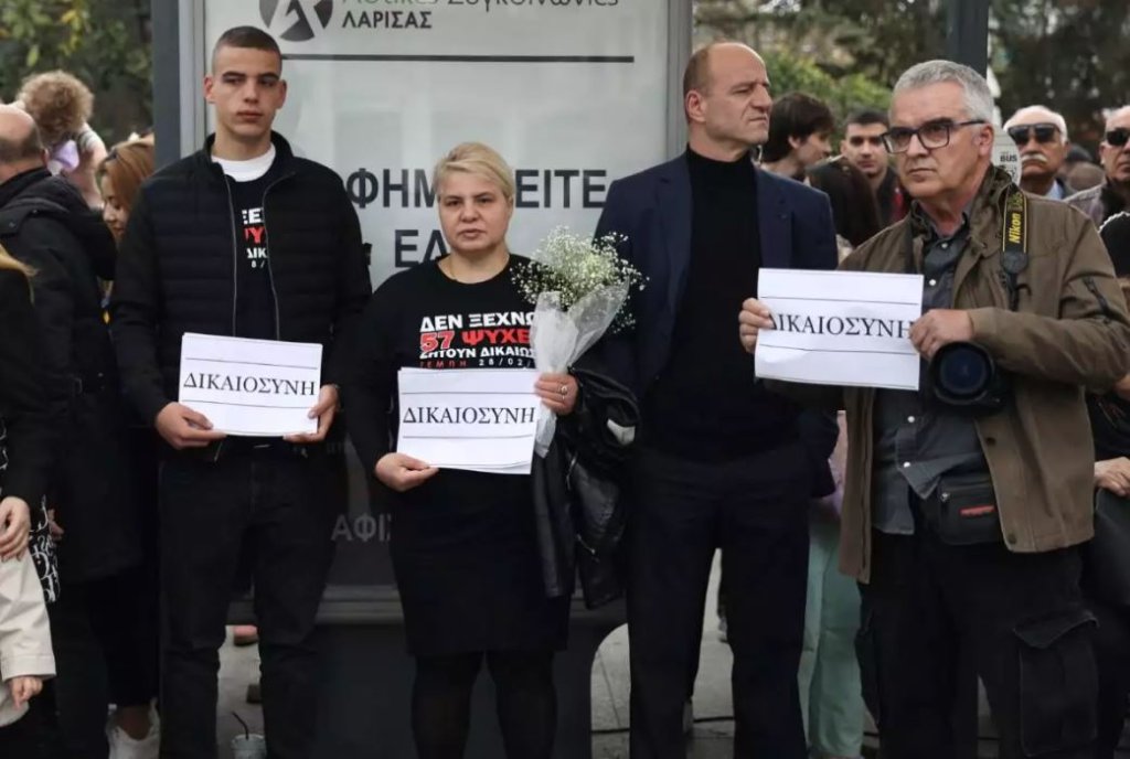 Οι συγγενείς του της Κλαούντια Λάτα, ένα από τα αδικοχαμένα θύματα της τραγωδίας των Τεμπών, έδωσαν το παρών στην παρέλαση για την Εθνική Επέτειο της 25ης Μαρτίου, στην Κεντρική Πλατεία της Λάρισας.