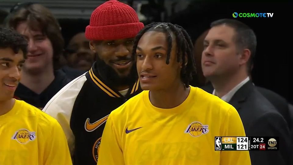 Στον πάγκο των Λέικερς βρισκόταν, με πολιτικά, ο Λεμπρόν Τζέιμς και ο φακός τον "έπιασε" να μετράει, με το χέρι του, προκειμένου να δει αν ο Έλληνας φόργουορντ θα σουτάρει εντός 10 δευτερολέπτων, που είναι και το χρονικό όριο που έχει ένας παίκτης βάσει κανονισμών.