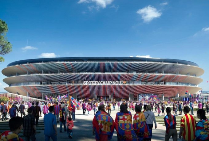 Αυτό τουλάχιστον λέει το πλάνο, που παρουσιάστηκε σε εκδήλωση στο Λονδίνο, αναφορικά με το μεγαλειώδες αυτό έργο. Οι Καταλανοί θα μπουν στο νέο τους γήπεδο μέσα στον Δεκέμβριο για να γιορτάσουν εκεί τα 125α τους γενέθλια λίγο πριν τα Χριστούγεννα.