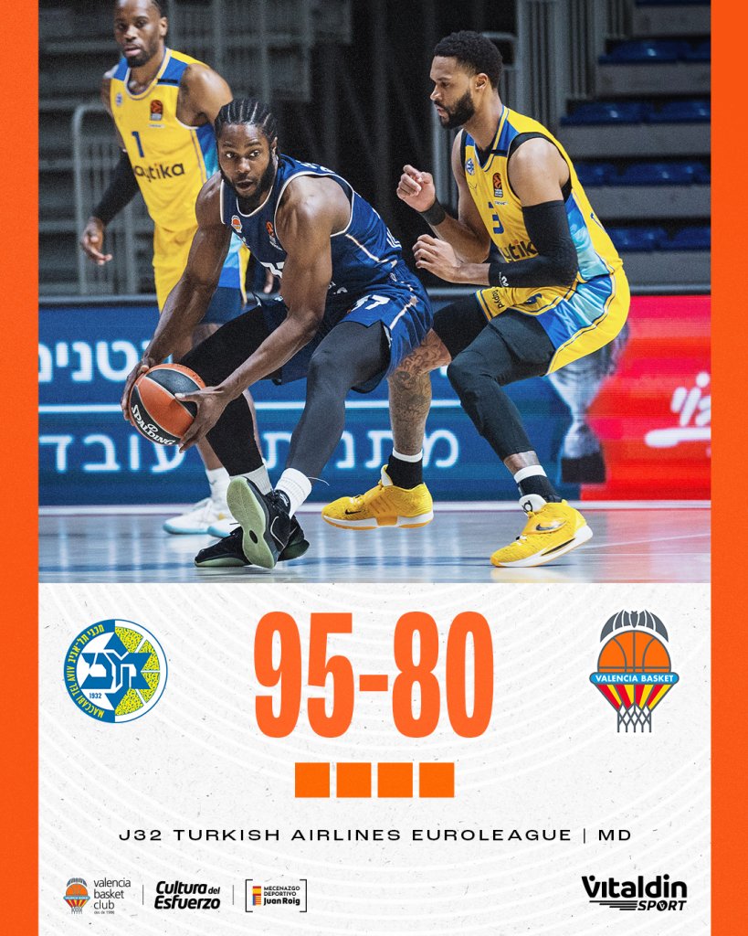 Την έκτη σερί νίκη της στη EuroLeage πανηγύρισε το βράδυ της Τετάρτης (27/3) η Μακάμπι, η οποία λύγισε με 95-80 τη Βαλένθια στη Χάλα Πιονίρ για την 32η αγωνιστική της κανονικής περιόδου.