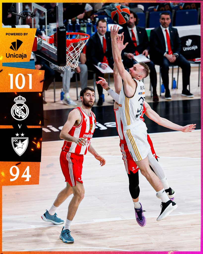 Η Ρεάλ ξεκίνησε χλιαρά, με ροτέισον και είδε τους αντιπάλους να ξεφεύγουν με 16 πόντους στην τρίτη περίοδο. Και όταν σοβάρεψε το γύρισε και πήρε τη νίκη απέναντι στον Ερυθρό Αστέρα με 101-94.