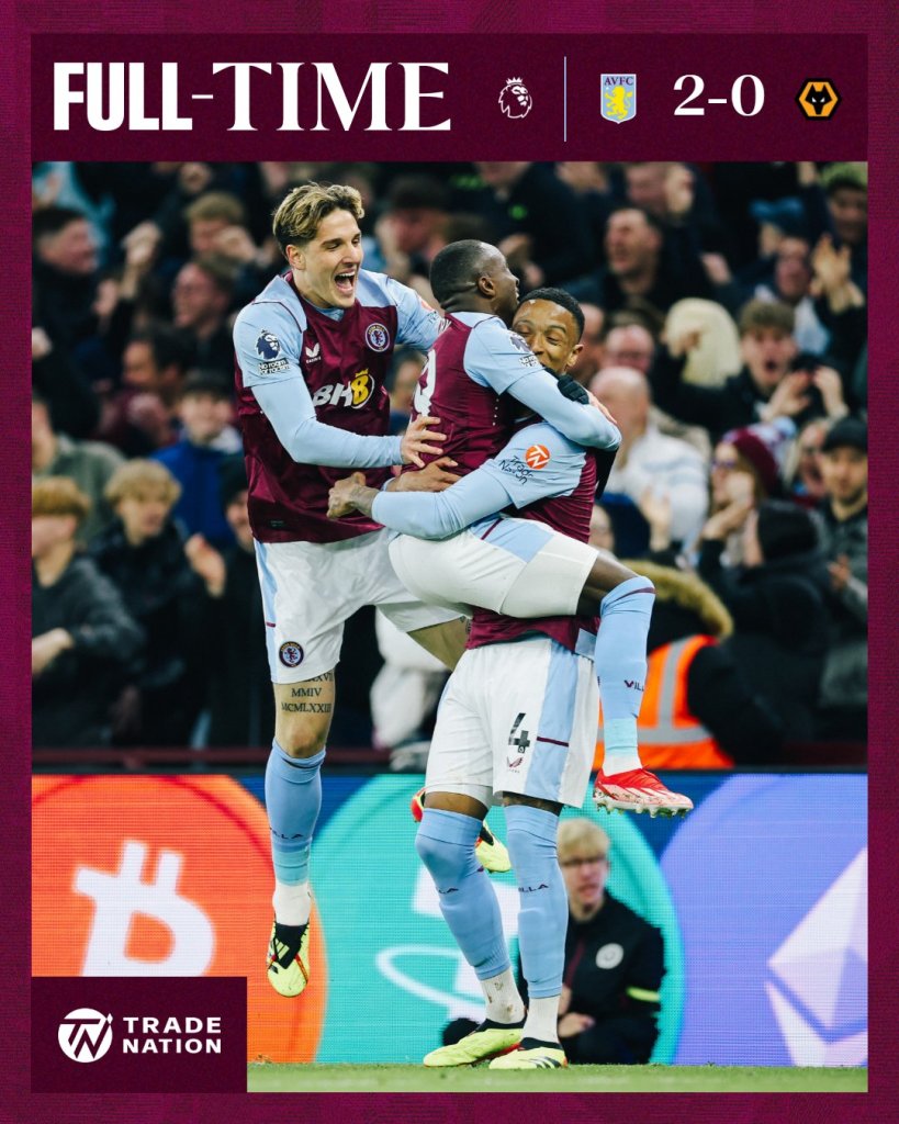 Η Άστον Βίλα κέρδισε άνετα τη Γουλβς με 2-0 και παρέμεινε σταθερά στο κυνήγι της τετράδας που οδηγεί στο Τσάμπιονς Λιγκ, ενώ αν δώσει εισιτήριο και η 5η θέση τότε το κρατά σφιχτά.