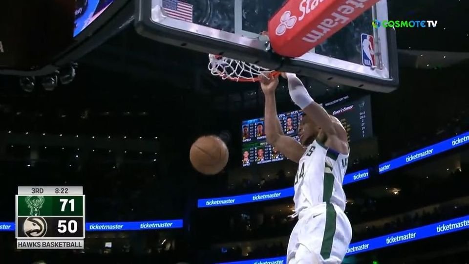 Ο Έλληνας φόργουορντ πήρε την μπάλα, από την επαναφορά, διέσχισε όλο το παρκέ και κάρφωσε, εκκωφαντικά, την μπάλα στο αντίπαλο καλαθι.