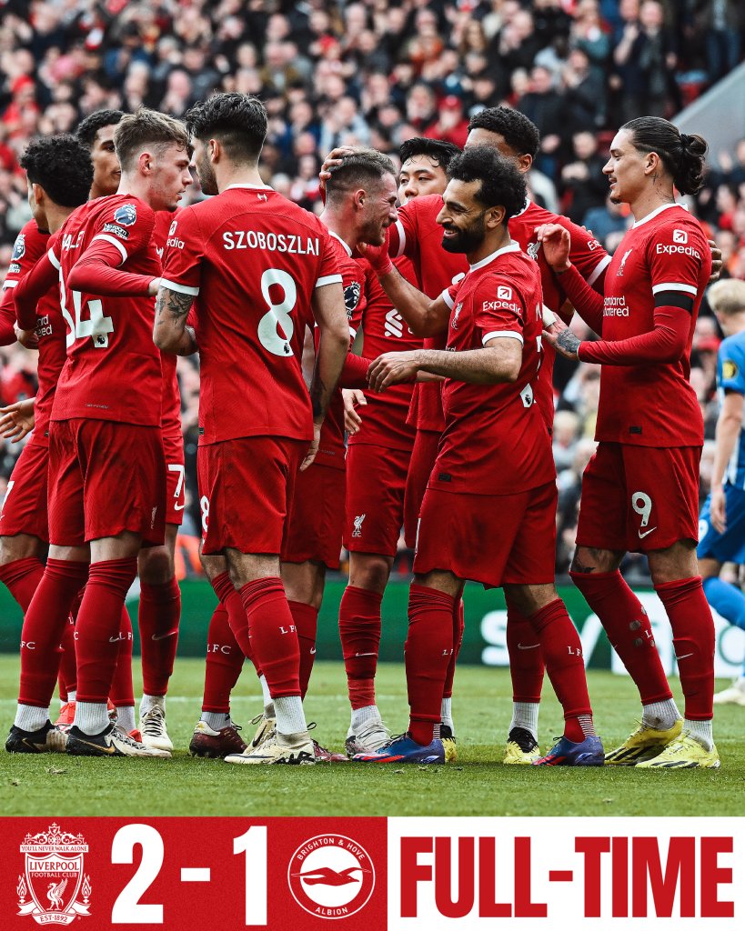Στο 9ο λεπτό το όμορφο φαλτσαριστό σουτ του Σαλάχ από δεξιά έφυγε ελάχιστα έξω ενώ στο 18’ ο Αιγύπτιος αστόχησε ξανά με προβολή στην κίνηση μετά από όμορφη μπαλιά του Μακ Άλιστερ. Στο ακριβώς επόμενο λεπτό ο Σαλάχ πλάσαρε άστοχα από το ύψος του πέναλτι και στο 27’ μετά από κόρνερ ο Αιγύπτιος γέμισε στην περιοχή με κεφαλιά και ο Ντίαζ πετάχτηκε στην πλάτη της άμυνας της Μπράιτον και με προβολή έγραψε το 1-1.