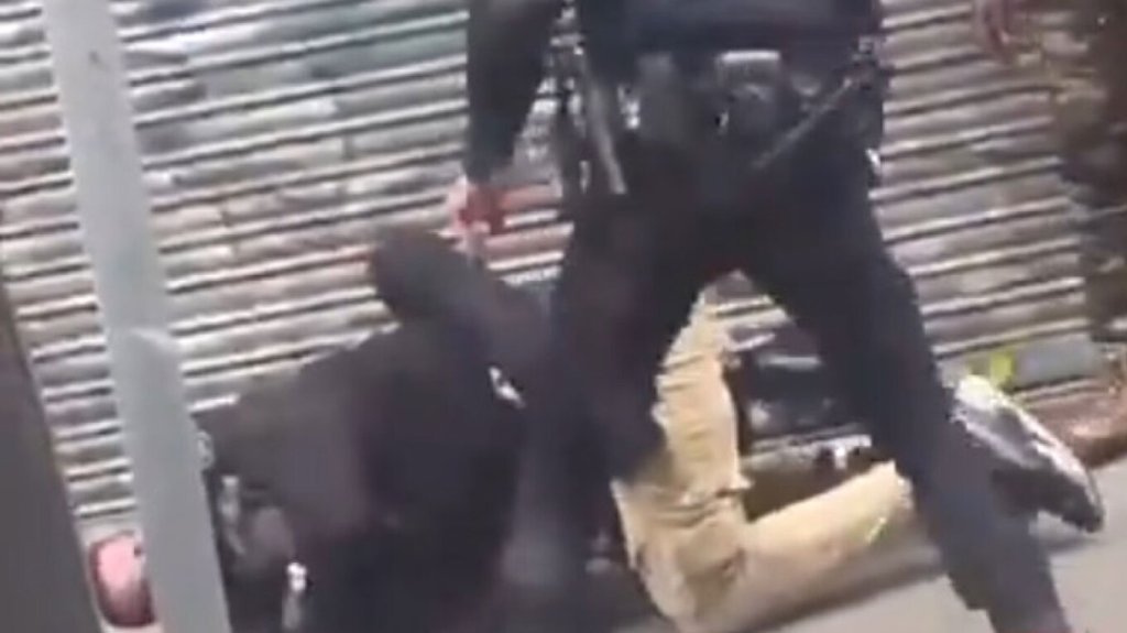 Το περιστατικό συνέβη την περασμένη Παρασκευή στην περιοχή Λαβαπιέ. Στο βίντεο φαίνεται ένας αστυνομικός να έχει ακινητοποιήσει με λαβή έναν άνδρα ενώ ο συνάδελφός του αρχικά χτυπάει τον άνδρα με γκλοπ του και στη συνέχεια γρονθοκοπεί έναν δεύτερο άνδρα που είναι ακίνητος και παρακολουθεί τι συμβαίνει.