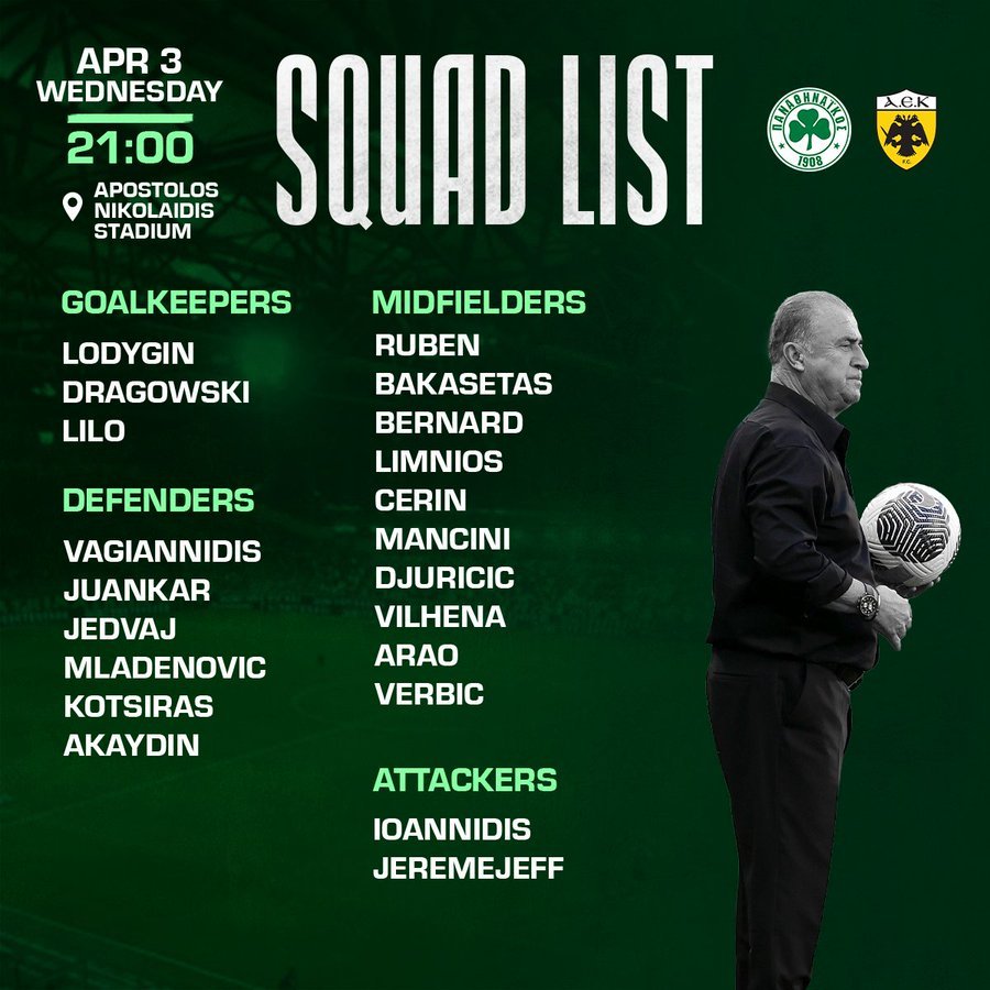 Μετά το τέλος της προπόνησης ο Φατίχ Τερίμ ανακοίνωσε τη λίστα με τα ονόματα που απαρτίζουν την αποστολή. Σε αυτή βρίσκονται οι Λοντίγκιν, Ντραγκόφσκι, Λίλο, Βαγιαννίδης, Χουάνκαρ, Ρουμπέν, Ιωαννίδης, Μπακασέτας, Μπερνάρ, Λημνιός, Τσέριν, Μαντσίνι, Γεντβάι, Μλαντένοβιτς, Κώτσιρας, Γερεμέγεφ, Τζούριτσιτς, Βιλένα, Αράο, Βέρμπιτς, Ακαϊντίν.