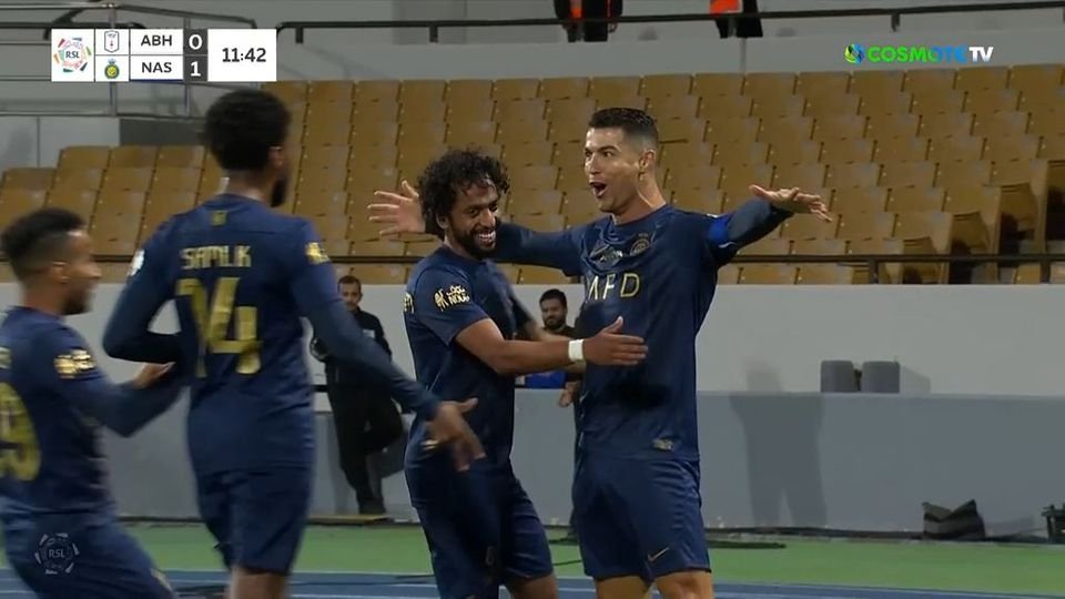 Πριν τη λήξη του πρώτου ημιχρόνου και συγκεκριμένα στο 42ο λεπτό, ο Ρονάλντο με... στυλ έκανε χατ-τρικ, «γράφοντας» παράλληλα και το 4-0 στην αναμέτρηση, η οποία αποδείχθηκε... περίπατος για το κλαμπ της Σαουδικής Αραβίας.
