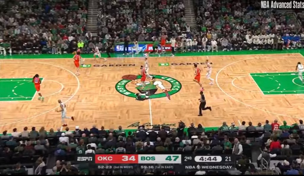 Ενδέκατη συνεχόμενη, εντός έδρας, νίκη για τους Σέλτικς, με τον Κρίσταπς Πορζίνγκις να έχει πέντε μπλοκ και να πετυχαίνει νταμπλ-νταμπλ, έχοντας 27 πόντους (8/11 δίποντα, 3/3 τρίποντα, 2/2 βολές) και 12 ριμπάουντ. Ακολούθησε ο Τζέισον Τέιτουμ (24 πόντοι με 7/15 σουτ) και ο Τζέιλεν Μπράουν (23 πόντοι με 9/20 σουτ). Στο 60-16 το ρεκόρ των Σέλτικς, έπεσε στο 52-24 η Θάντερ, από την οποία απουσίαζε, για τέταρτη φορά, στα πέντε τελευταία παιχνίδια, ο πρώτος της σκόρερ, ο Σάι Γκίλτζιους-Αλεξάντερ. Η ομάδα από την Οκλαχόμα είχε 5/24 τρίποντα και πρώτο σκόρερ τον Τζος Γκίντεϊ με 17 πόντους.