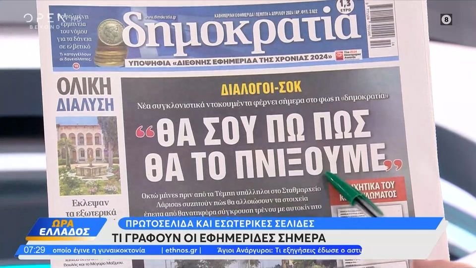 Τα θέματα της ειδησεογραφίας που αναδεικνύονται στον ελληνικό Τύπο, σήμερα 4 Απριλίου
