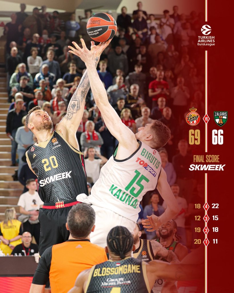 Η Μονακό ίδρωσε κόντρα στη Ζαλγκίρις, όμως τελικά πήρε τη νίκη με 69-66 και πλέον βρίσκεται αγκαλιά με το πλεονέκτημα έδρας ενόψει των πλέι οφ της Euroleague.