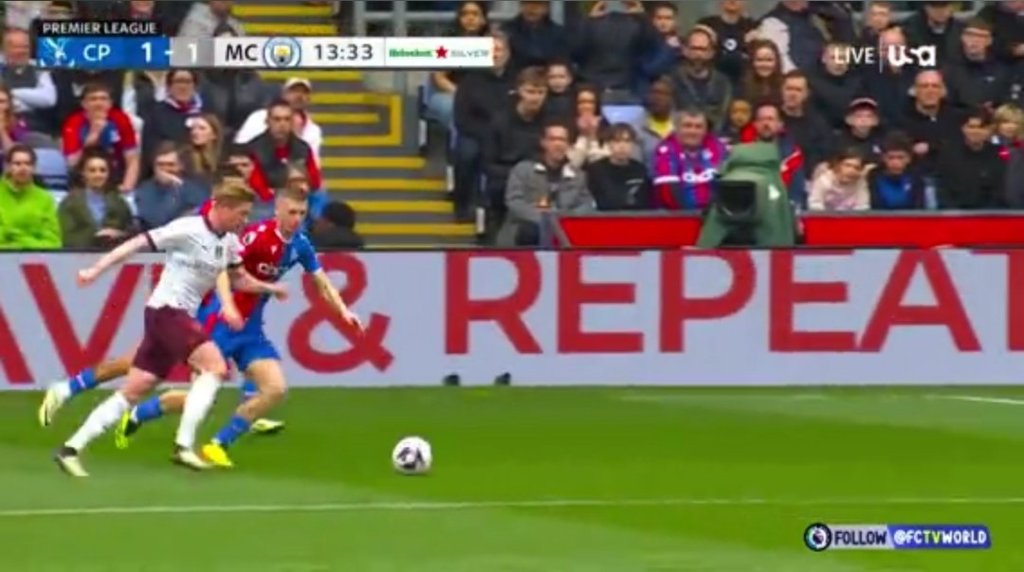 Με τη συμπλήρωση τεσσάρων λεπτών αγώνα, στο "Σέλχαρστ Παρκ", ο Ματετά είδε τον κενό χώρο, στην πλάτη της άμυνας, και πλάσαρε, ανοίγοντας το σκορ για τους γηπεδούχους. Εννέα λεπτά αργότερα, ήρθε η απάντηση, από πλευράς Σίτι, χάρη στο τρομερό γκολ του Κέβιν Ντε Μπρόινε. Ο Αγιού είχε δοκάρι, στερώντας την ευκαιρία στην Κρίσταλ Πάλας να προηγηθεί, πριν από τη λήξη του ημιχρόνου, το οποίο βρήκε τις δυο ομάδες ισόπαλες, 1-1.