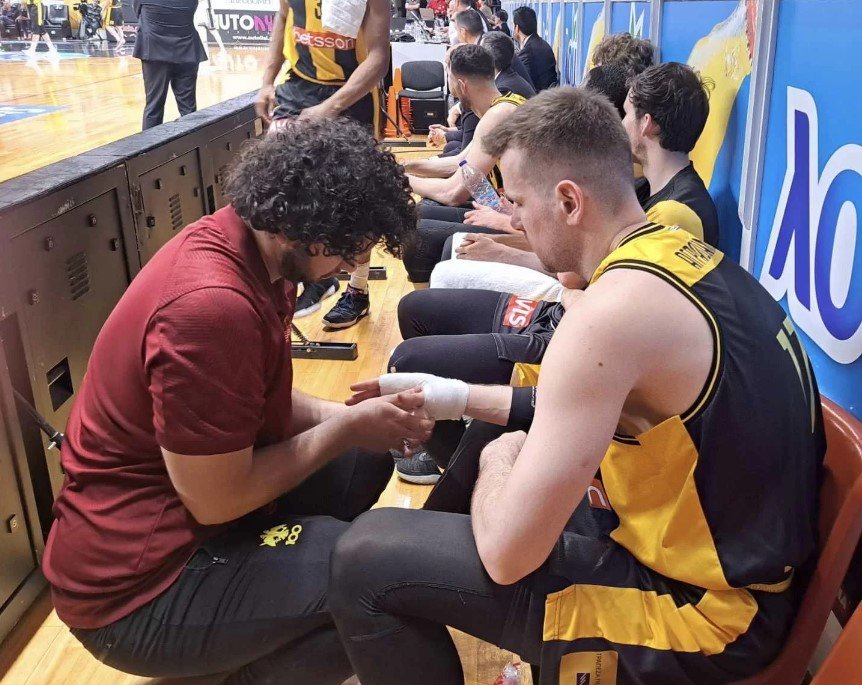 Ο Δημήτρης Αγραβάνης υπέστη κάκωση άκρας δεξιάς χειρός στη διάρκεια της αναμέτρησης Απόλλων Πάτρας Carna – ΑΕΚ BETSSON BC.