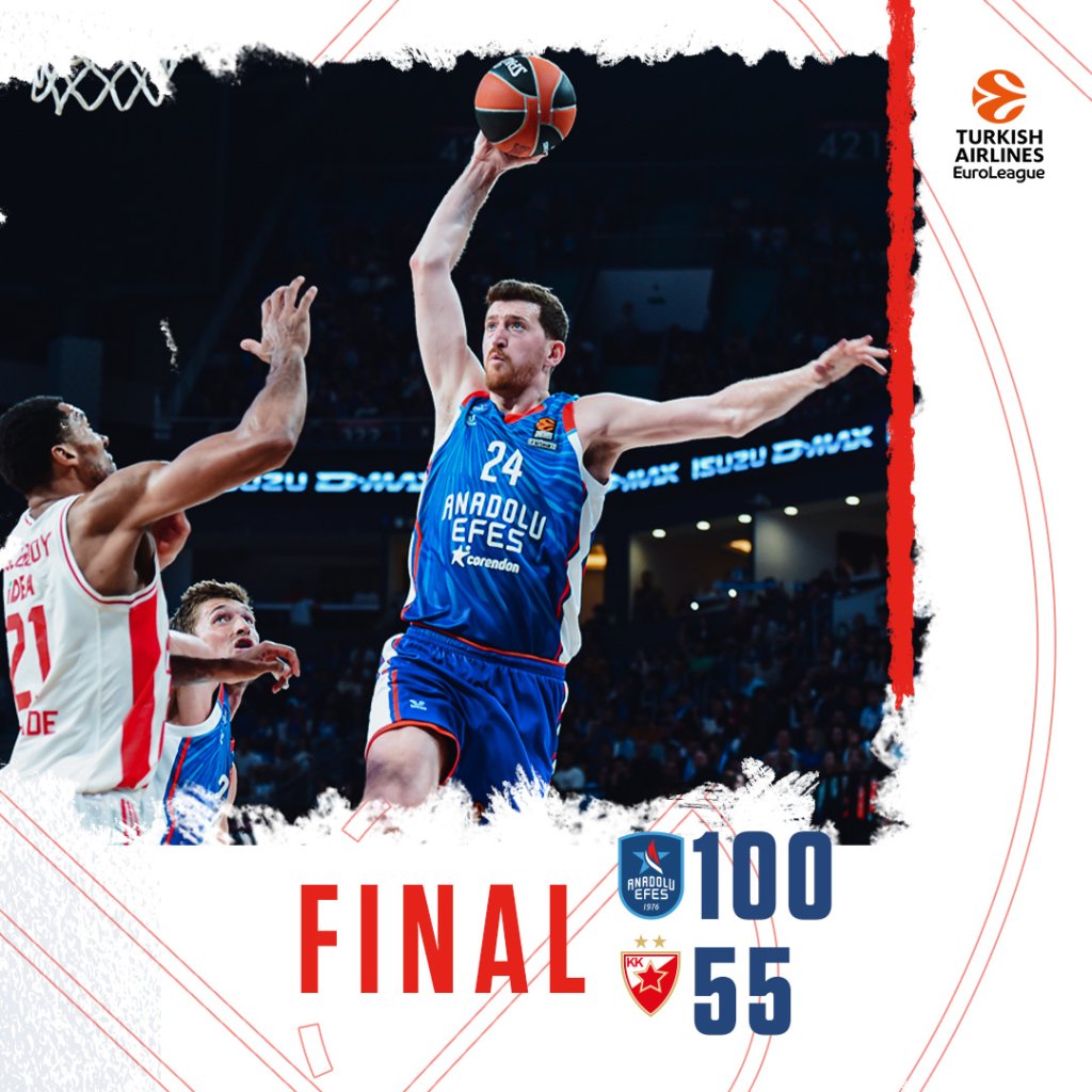 Η Αναντολού Εφές ήθελε τη νίκη για να πάρει την 9η θέση και να εξασφαλίσει τα play in και το πέτυχε με το επιβλητικό 100-55 κόντρα στον αδιάφορο βαθμολογικά Ερυθρό Αστέρα.