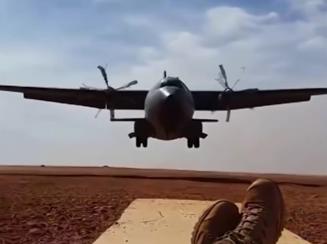 To βίντεο έχει ανεβάσει Γάλλος στρατιώτης, μέλος της γαλλικής αποστολής στο Μάλι. Ο στρατιώτης περιμένει ξαπλωμένος σε έναν αυτοσχέδιο-χωμάτινο αεροδιάδρομο όταν στον ορίζοντα εμφανίζεται ένας τεράστιο Transall C-160.