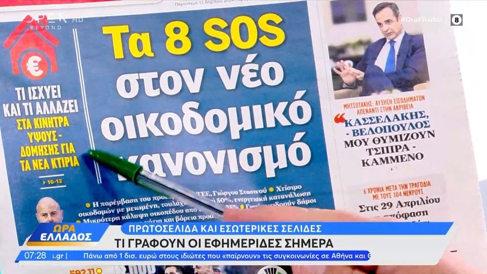Τα θέματα της ειδησεογραφίας που αναδεικνύονται στον ελληνικό Τύπο, σήμερα 12 Απριλίου