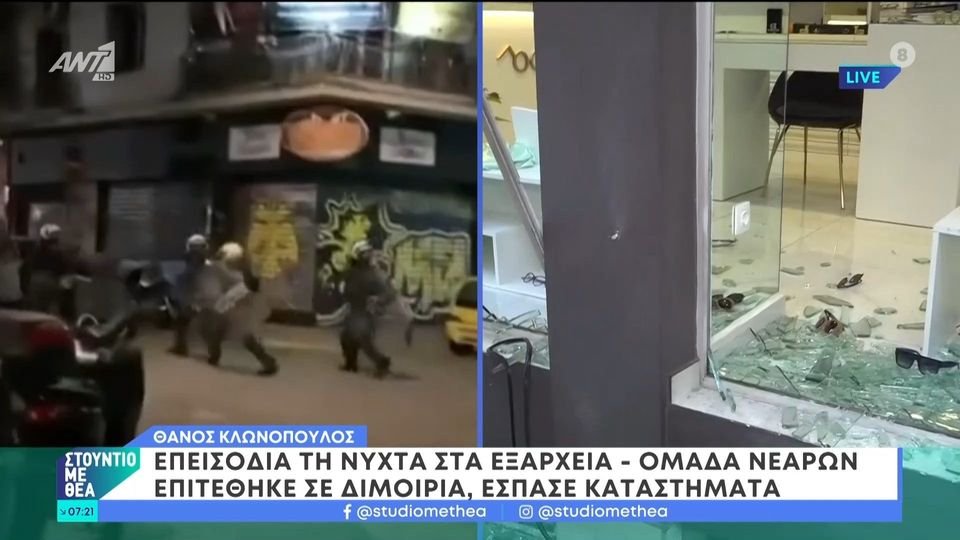 Ομάδα νεαρών επιτέθηκε σε διμοιρία στα Εξάρχεια τα ξημερώματα του Σαββάτου, έσπασε καταστήματα.