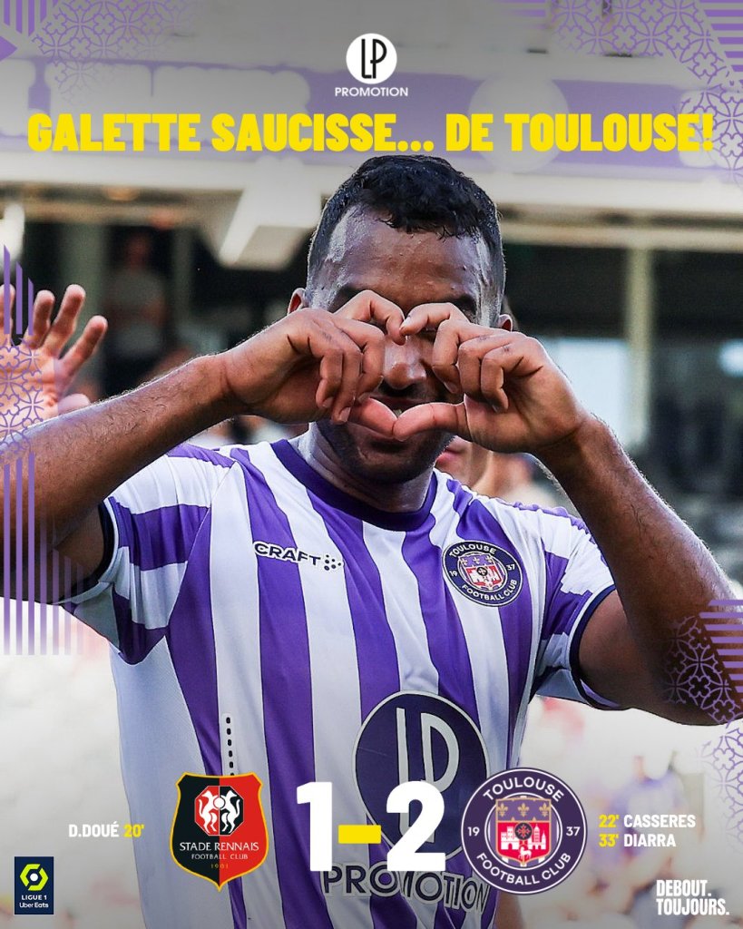 Η Ρεν άνοιξε το σκορ στο 20’ με τον Ντουέ αλλά δύο λεπτά αργότερα ο Κάσερες έκανε το 1-1. Μάλιστα στο 32’ ο Ντιαρά έγραψε το 1-2 και χάρισε σπουδαίο διπλό στην Τουλούζ.