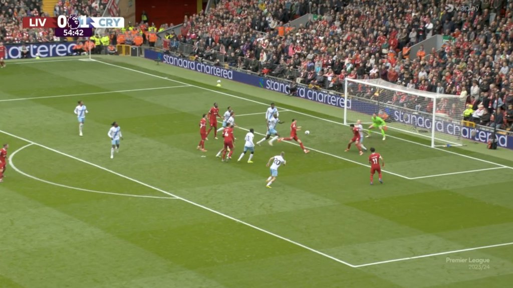 Η Κρίσταλ Πάλας προηγείται μέσα στο Άνφιλντ επί της Λίβερπουλ και ο Νούνιεζ έχασε μοναδική ευκαιρία απο ευνοϊκή θέση να ισοφαρίσει για τους κόκκινους.