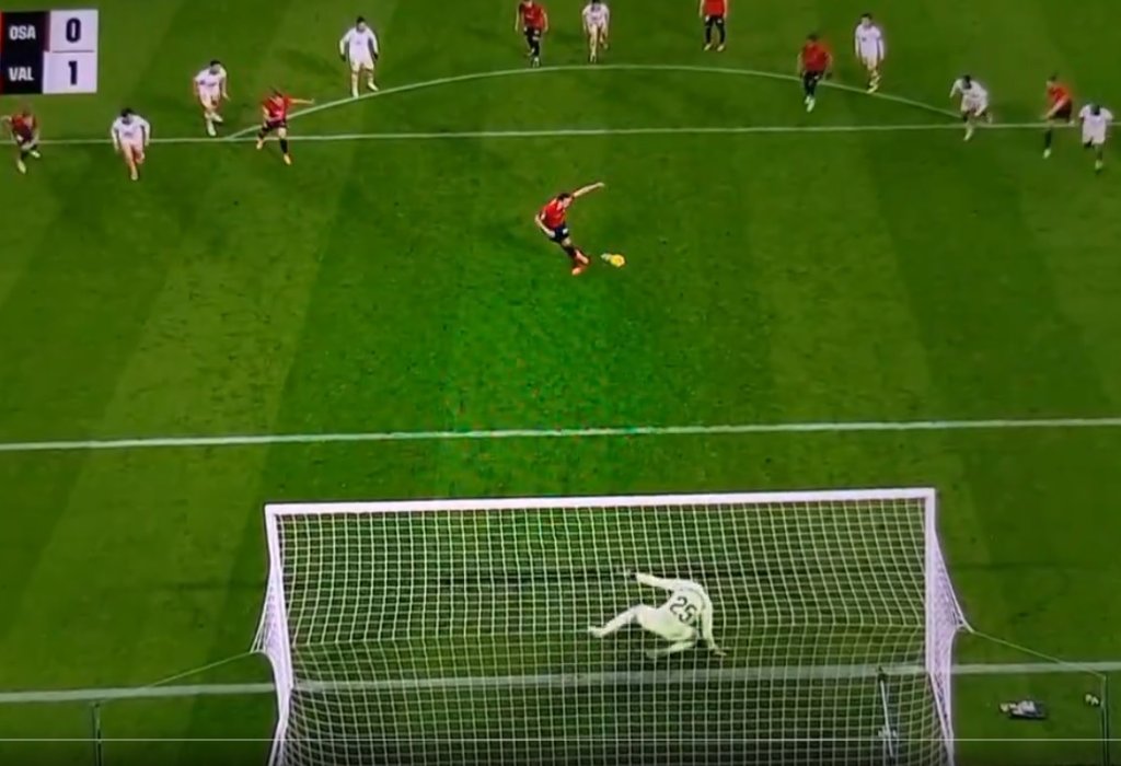 Καθυστερήσεις στην Παμπλόνα και η Οσασούνα κερδίζει πέναλτι ενώ η Βαλένθια προηγείται με 1-0. Το αναλαμβάνει ο παίκτης που το κέρδισε, ο Μπούντιμιρ. Παίρνει φόρα, μπερδεύεται, σχεδόν πέφτει και η μπάλα φτάνει με τα βίας στον Μαμαρντασβίλι που λέει… ευχαριστώ.