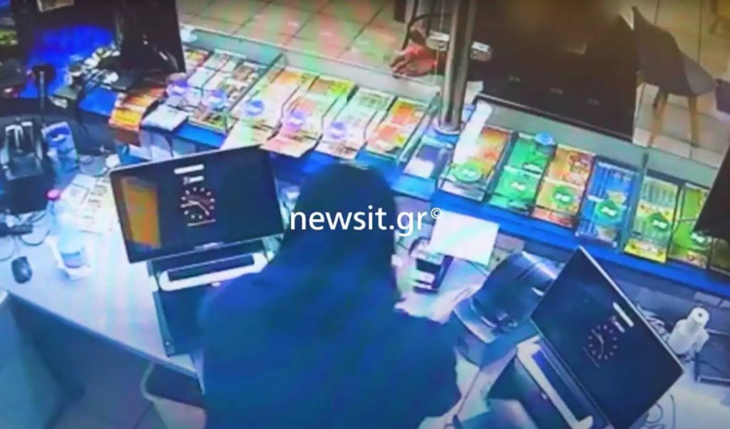 Στο βίντεο που κατέγραψαν κάμερες ασφαλείας πρακτορείου, φαίνονται οι δράστες να μπαίνουν στο κατάστημα με καλυμμένα τα χαρακτηριστικά τους και να παίρνουν ό,τι βρουν.