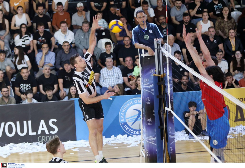 Οι γηπεδούχοι ξέφυγαν γρήγορα με 5-1 με τρεις άσσους του Μιχαήλοβιτς, για να πλησιάσει ο Πανιώνιος στο 11-9 με άσο του Ζέλερ. Οι κυανέρυθροι όμως με συνεχόμενα λάθη επέτρεψαν στον ΟΦΗ να ξεφύγει για να φτάσουμε στο 20-14. Το σερί 0-3 των φιλοξενούμενων έβαλε φωτιά στο ματς (20-17) όμως αρχικά ο Μάκινεν και στη συνέχεια ο Μιχαήλοβιτς τελείωσαν όλες τις κρίσιμες μπάλες με τον τελευταίο να διαμορφώνει το τελικό 25-20 δίνοντας το έναυσμα για τους ξέφρενους πανηγυρισμούς.
