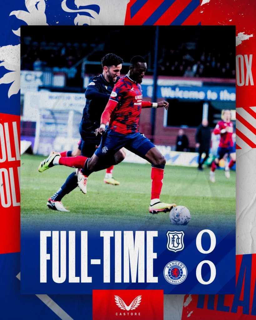 Σε μία αναμέτρηση οπού η νίκη ήταν αναγκαία η Ρέιντζερς είχε κάποια καλά διαστήματα αλλά δεν κατάφερε να βρει το γκολ και έτσι έμεινε στο 0-0 απέναντι στην Νταντί. Δεύτερη συνεχόμενη ισοπαλία για την Ρέιντζερς, η οποία έχασε σημαντικό έδαφος στην μάχη του τίτλου, ενώ λίγες εβδομάδες πριν είχε την κατάσταση στα χέρια της.