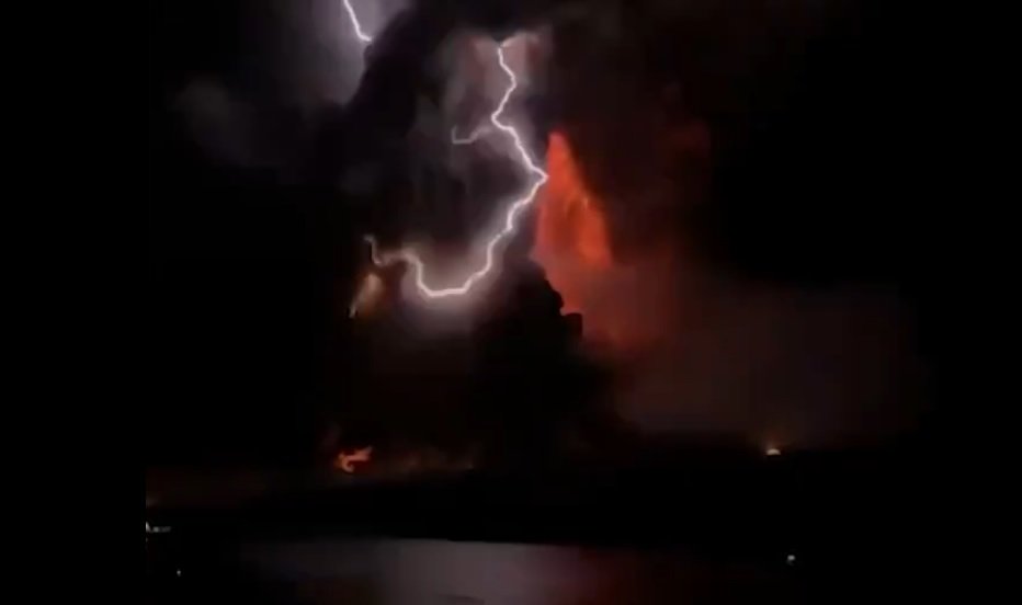 The night sky glowed red and flashed with lightning as Indonesia's Mount Ruang volcano erupted Wednesday evening, forcing hundreds to evacuate. pic.twitter.com/7bwUhi2Bt7