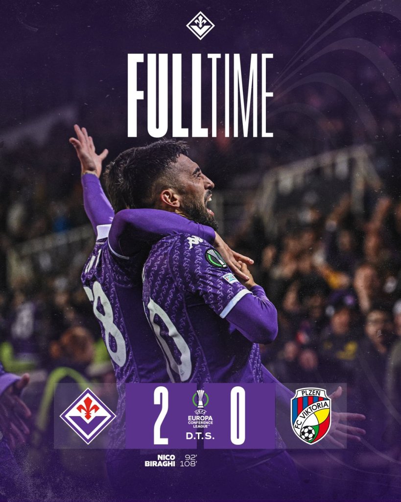 Στο 104’ οι «βιόλα» είχαν κι άλλο δοκάρι σε κεφαλιά του Μαρτίνες μετά από κόρνερ και στο 108’ η Φιορεντίνα έφυγε στην κόντρα, ο Ικονέ έδωσε αριστερά στον Μπιράγκι που από κοντά πλάσαρε για το 2-0.